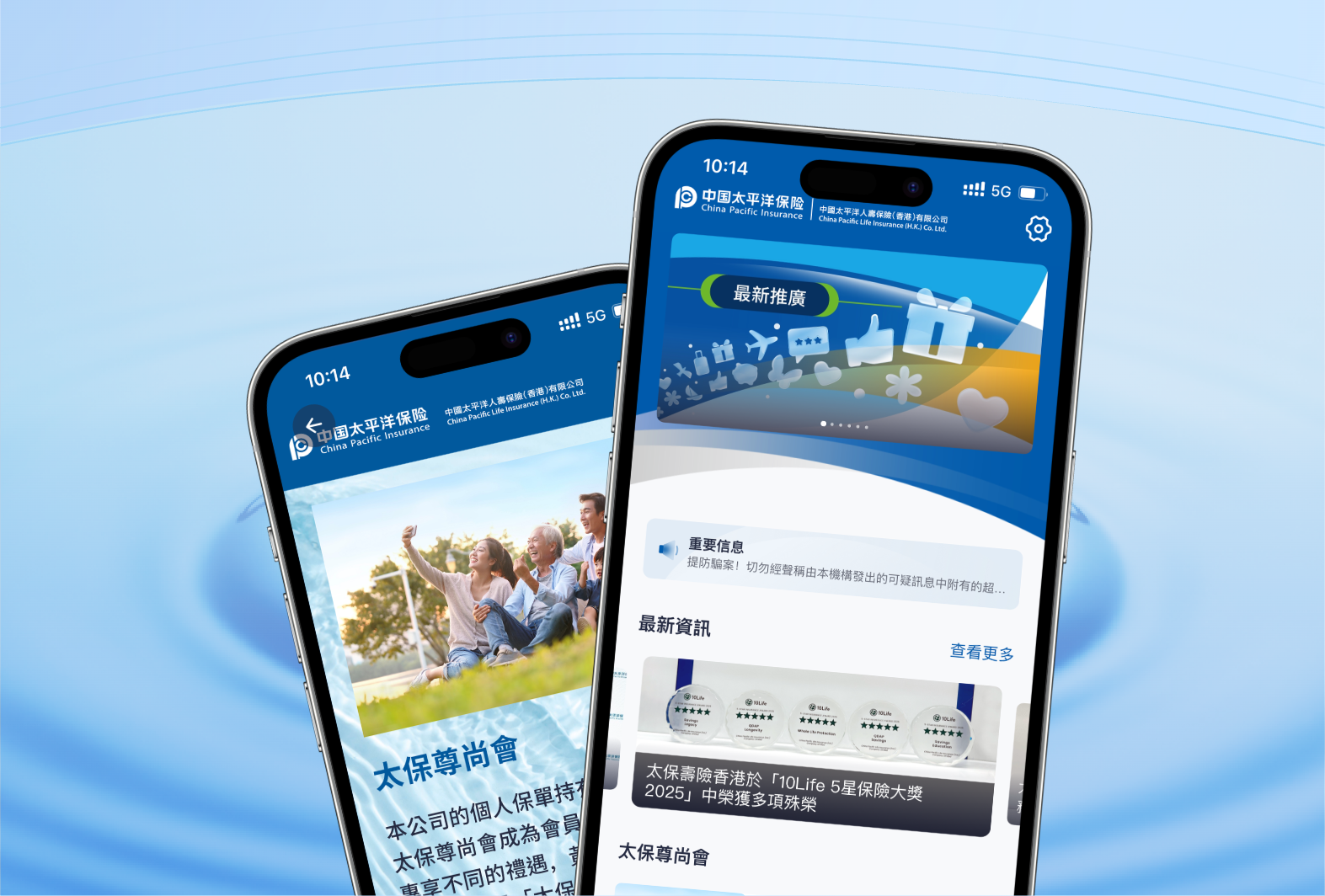 中國太平洋人壽保險(香港)有限公司(「太保壽險香港」)以「打造客戶體驗最佳的香港人壽保險公司」為願景,致力為香港市場提供最佳的健康及養老解決方案。本公司堅持以客戶需求為導向,圍繞健康、財富和養老三大核心需求,持續升級「產品 + 服務」金三角體系,為客戶提供中國太保「責任、智慧、溫度」的服務與體驗。